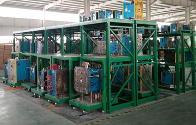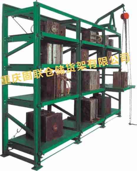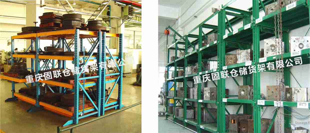抽屜式貨架主要用于存放各類(lèi)模具,該貨架除頂層外,其余各層都可拉出,以便于行車(chē)吊運(yùn)。抽屜板底部設(shè)有滾輪軌道,抽屜板承載后仍能自由的拉動(dòng)。 滾輪軌道是用模具一體成型,精度極高,有極高裝配精度,所以滾輪使用壽命大大延長(zhǎng)并且使用時(shí)拉出或推入很省力。