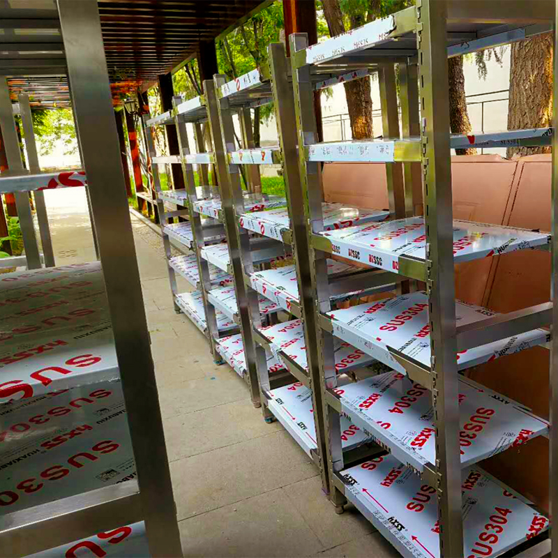 不銹鋼貨架外型美觀,每層在均勻分布狀態(tài)下承載可達(dá)350kg;堅(jiān)固耐用,可滿足工廠、倉庫、裝配線、倉儲(chǔ)超市的要求。插接組合式結(jié)構(gòu),拆裝便利,投入較少,用途廣泛。