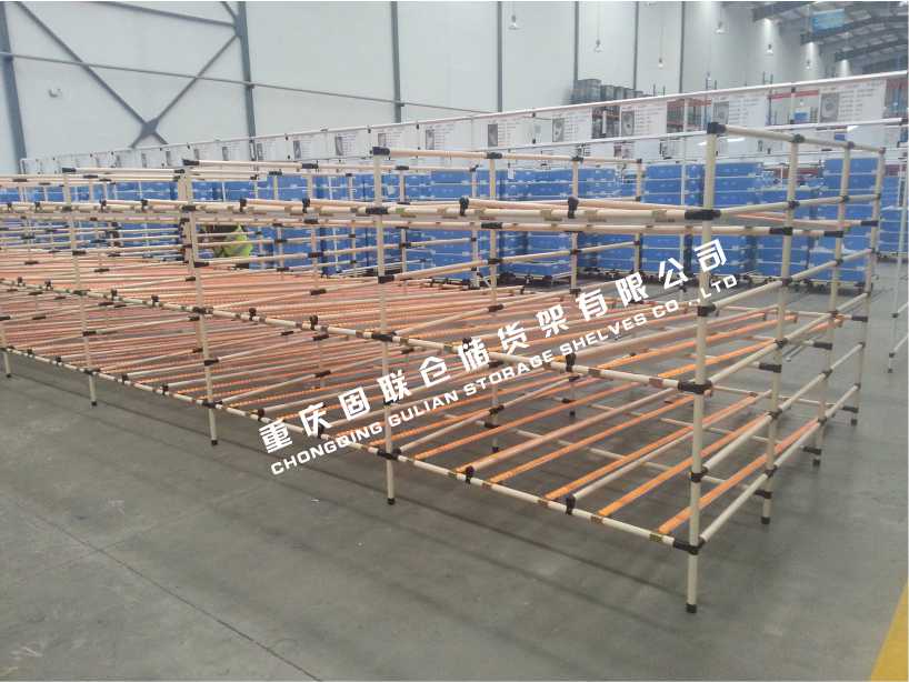 此库房重庆某汽车公司库房线棒式滑移货架。