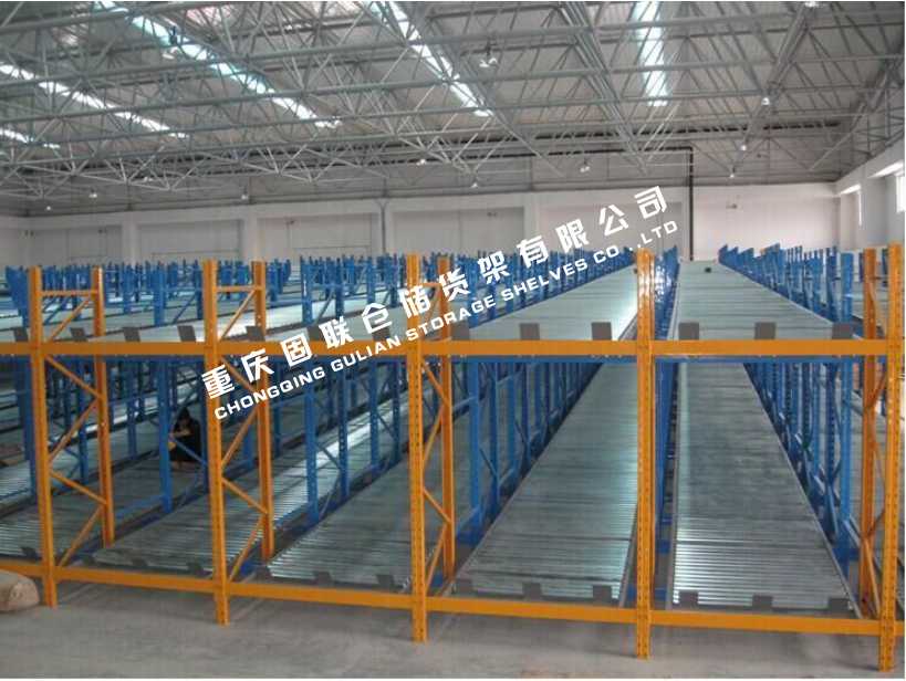 此库房重庆某汽车公司库房重力式货架,托盘1000*1200mm,辊筒采用60*3.0辊,承载1T/托。